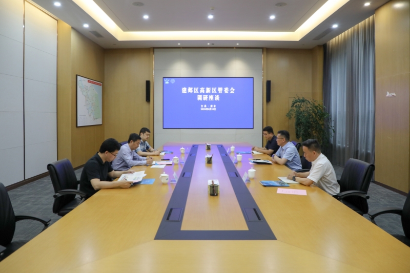 6月10日,建邺高新区管委会主任侍得广一行来公司调研交流。公司党委书记、董事长袁连冲参加座谈。