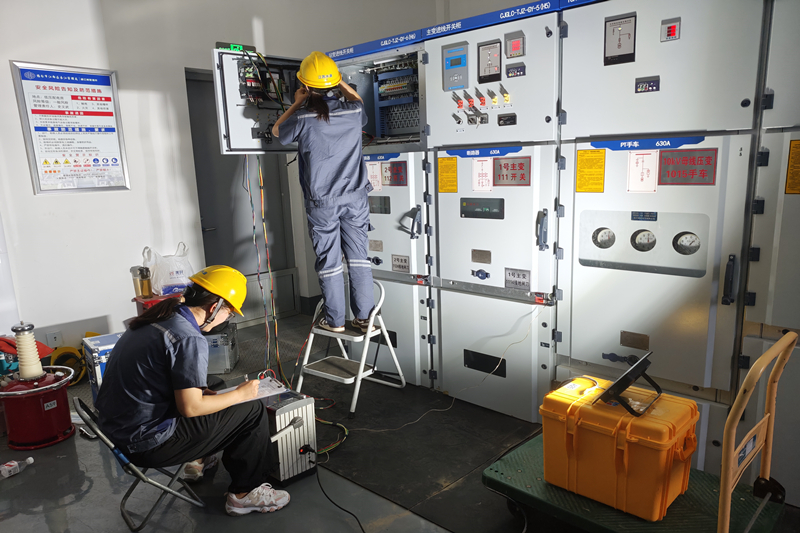 高温高湿天气,闷热的配电间像个密不透风的蒸笼,面对停电作业的艰苦环境,试验团队以毫厘不差的精准把好精品关、严格关,坚决筑牢品质防线。高压试验组扛着沉重的试验仪器在配电间穿梭,仪表检测组面对数量大、型号多的各类型仪表逐一检测并认真核对数据,消缺小组踩着泥泞登高作业,连续多日转场作战,日均工作超12小时。团队里两名首次参与试验的女试验员也毫不示弱,和男试验员一道钻进闷热的配电间,专注完成3套继电保护装置及105只电气仪表的校验工作,校验结束后又主动加入高压试验和问题整改中,用细致与坚韧展现着别样力量。整个团队用钢铁般的意志攻克一个又一个技术难题,以实干担当为设备安全运行保驾护航。